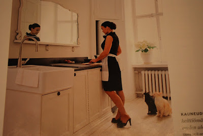 ohessa ihana kuva (glorian koti - helmikuu 2009). wanna-be-me. ihannemaailmassa minäkin pukeutuisin kotona viimeisen päälle ja tukka olisi ojennuksessa ja kaikkialla olisi kaunista ja rauhallista ja siistiä ja puhdasta. MUTTA miten yhdistää tupsupistokkaat a) mukavuudenhaluun b) kaksikerroksiseen kotiin c) pikkulapsiarkeen?