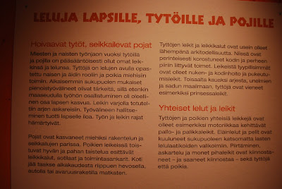 tänään juhlittiin kuopuksen synttäreitä tampereella museokeskus vapriikin näyttelyssä 'aika leikkiä'. näyttelyyn oli koottu leluja usealta vuosikymmeneltä. lisäksi lapset saivat katsella elokuvia, keinua keinuhevosilla, ajaa virtuaalilumikelkalla ja leikkiä jättiläispalikoilla. lapset ja aikuisetkin viihtyivät mainiosta. huomenna juhlat jatkuvat pulkkamäessä kummien kanssa.