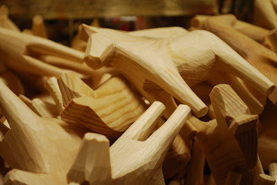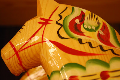 taalainmaan hevosia valmistetaan siljan-järvellä nusnäsin kylässä. niitä löytyi sitten useampaa kokoa ja väriä. ajattelin ostaa vähän isomman mustan kotiintuomisiksi mutta hinta oli niin kova, etten raaskinnut. kirppikseltä löydettiin lapsille vähän-vaiheessa-olevat hepat.