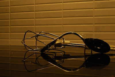 näin käy kun lusikka joutuu vatkaimen pyöritykseen. en suosittele. onneksi on mies talossa, sillä hän korjasi sekä härdellistä vaurioituneet vispilät että lusikan. itse yritin ensin, ilman tulosta. eikä ole ensimmäinen kerta. viimeksi pesin hts-turvaistuimen päälliset ja otin siksi turvavyöt irti. olin myös aivan varma, että muistan kuinka ne takaisin saadaan. raivonpäisenä sitä yritin koota ja hoin vaan mielessäni 'en varmaan pyydä apua, pakko onnistua'. aikansa mies tätä kiroilua katseli ja kävi sitten tarkistamassa autossa olevasta toisesta istuimesta kuinka se laitetaan ja homma oli hoidettu muutamassa minuutissa. minulta siihen tyhjäntoimittamiseen oli silloin kulunut jo iäisyys. toisaalta hyvä, että hommat tulee hoidettua, toisaalta...