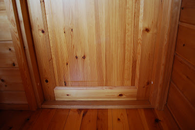 tässä mökissä oli käytetty mäntyä katossa, seinissä ja verholaudoissa...